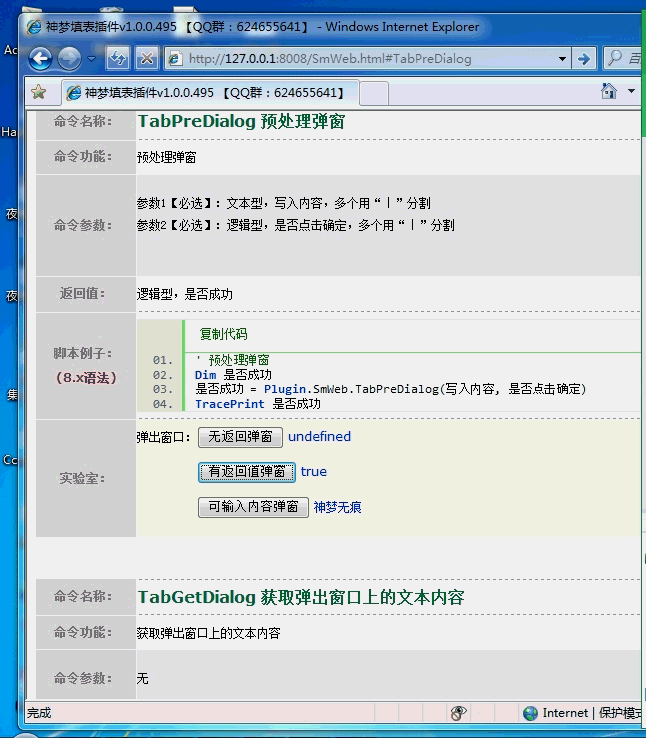 Tips("【启用元素】:" & Plugin.SmWeb.HtmlEnabled(True, "#myEnabled")) : TracePrint(运行状态)